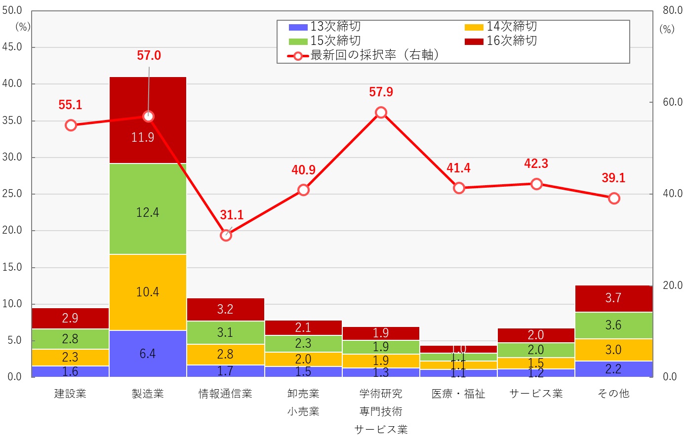 幅広い業種、様々な規模等にも幅広く採択の機会があることがご覧いただけます。